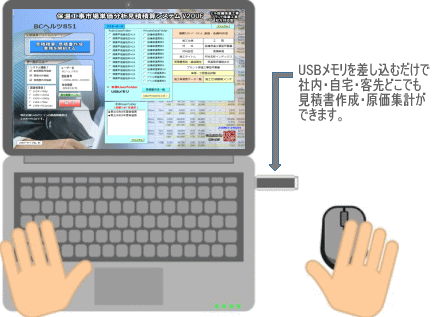 | 各仕様積算単位による合計材料費、各材料ごとの材料費、材料入数の集計が行えます。 | |||||||||||||||||||||||||||||||||||||||||||||||||||||||||||||||||||||||||||||||||||||